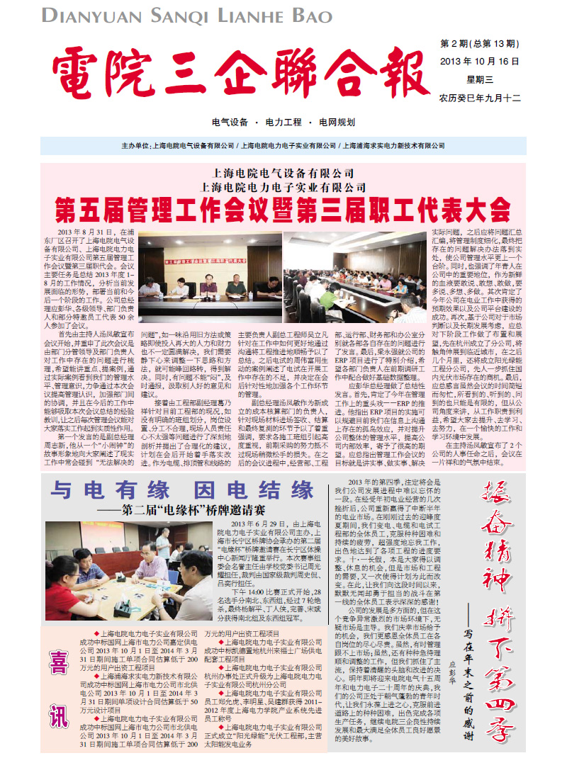 上海電院電氣設(shè)備有限公司 >> 企業(yè)報(bào)