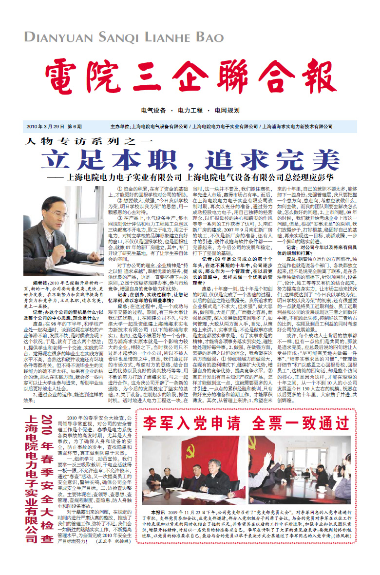 上海電院電氣設備有限公司 >> 企業(yè)報